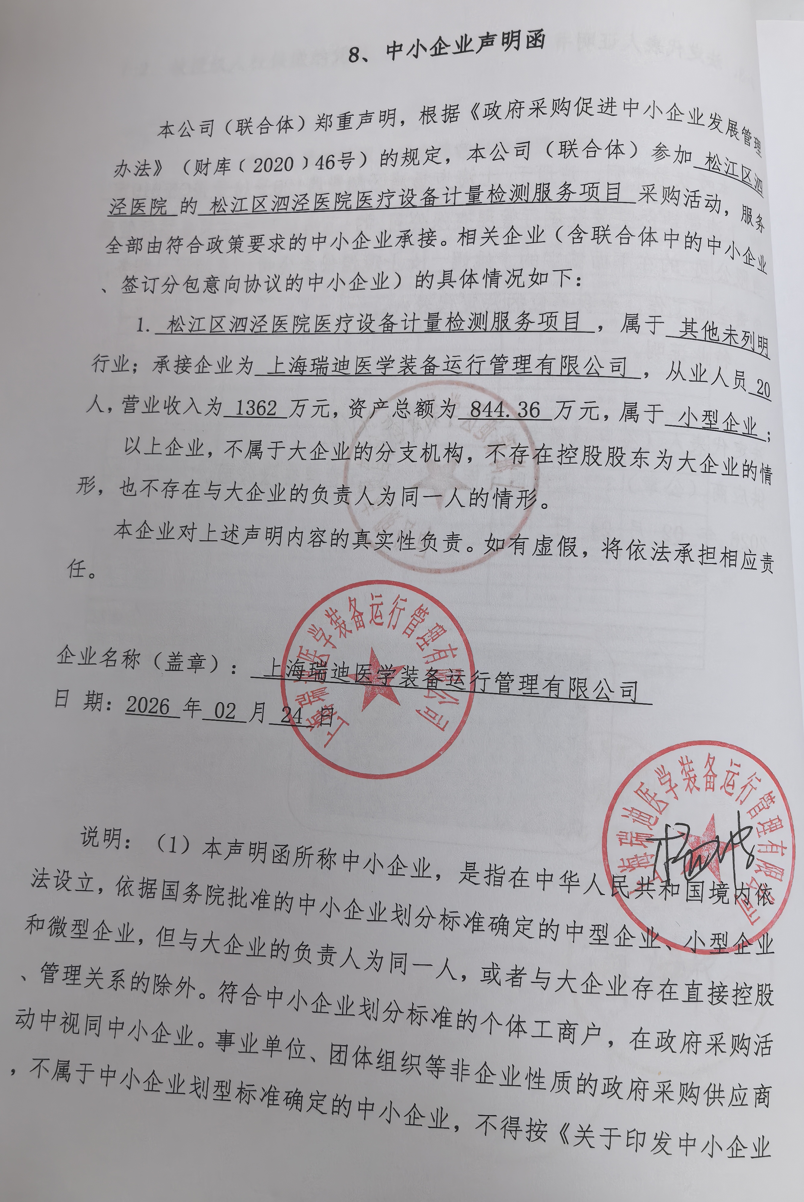松江区泗泾医院医疗设备计量检测服务项目,服务期限:2026年3月1日 至2028年2月29日,具体项目内容、采购范围及所应达到的具体要求,以竞争性谈判文件相应规定为准。