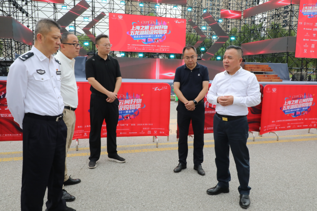 党工委书记夏爱军,党工委副书记、办事处主任李江一行到马蹄广场(“上海之根 云间好物”五龙湖超级购物季活动筹备现场)和袜子新弄进行节前安全督导。夏爱军强调,加强人员密集场所巡查力度,及时消除安全隐患,充分做好节假日大客流的应对准备,确保第一时间快速响应,筑牢安全防线。