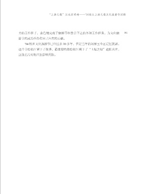 “上海之根”从这里唱响——’94松江上海之根文化旅游节回顾 力的工作班子,出色地完成了旅游节组委会下达的各项工作任务,为文化旅 161 游节的成功举办作出了应有的贡 献。 ’94 松江文化旅游节已经过去 20 多年,但是当年的场景至今还记忆犹新。 这个节给松江留下了很多,最重要的是给松江留下了“上海之根”这张名片, 这张名片对松江的影响无 限。 ౕൂ १ඍࡾڿ۪ष٢ JOEE