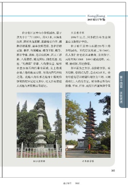 之冠。此幢八角柱形之幢身上镌刻佛 身外壁每层以砖制柱划分为三间,正间 十