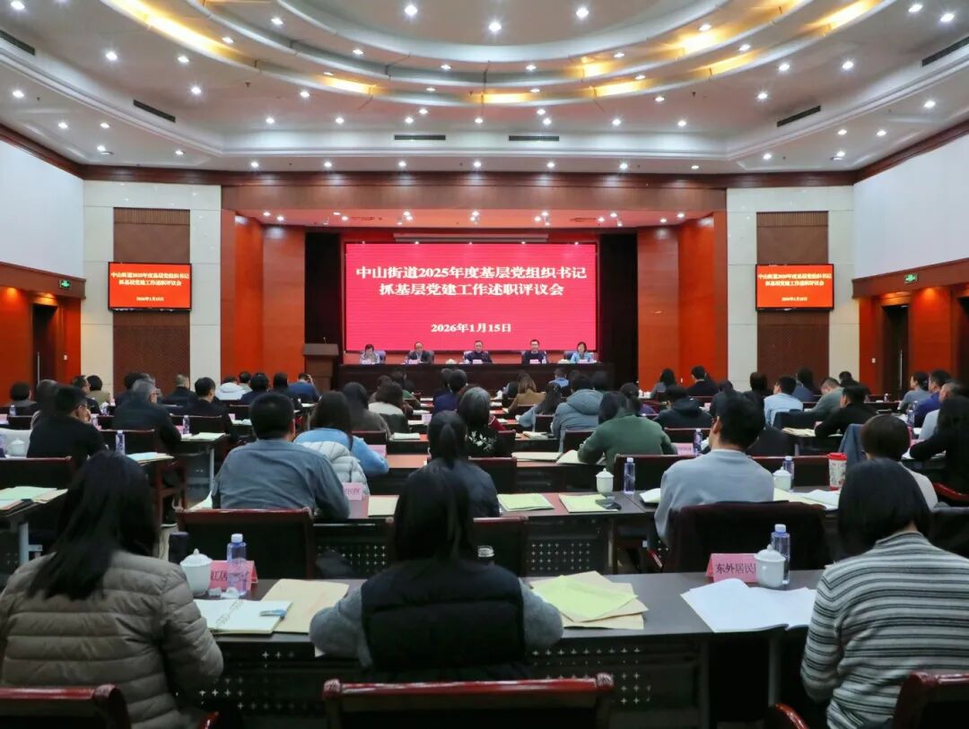 1月15日下午,中山街道召开2025年度基层党组织书记抓基层党建工作述职评议会。街道党工委书记、人大工委主任、区二级巡视员夏爱军主持会议并讲话,区委组织部副部长、区委党建办主任牛斌出席会议并进行点评指导。党工委副书记、办事处主任李江等党政领导班子成员及其他区管处级干部出席会议。