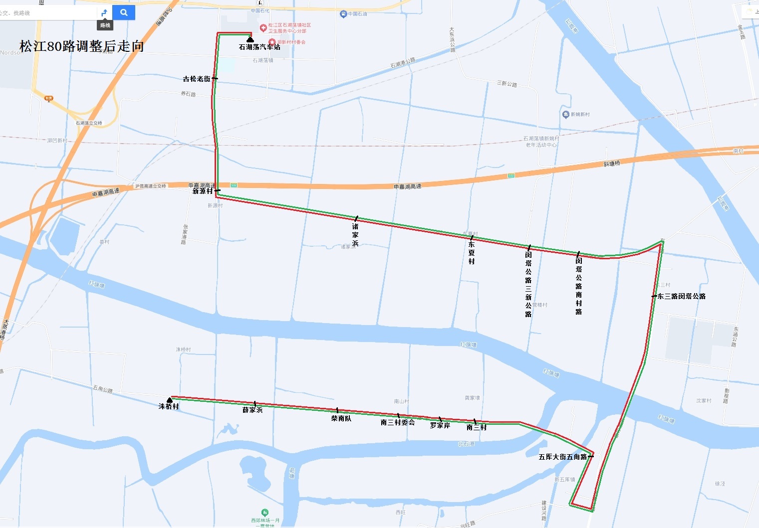 调整后新增站点:五厍大街五甪路、南三村、罗家岸、南三村委会、柴南队、薛家浜、洙桥村
