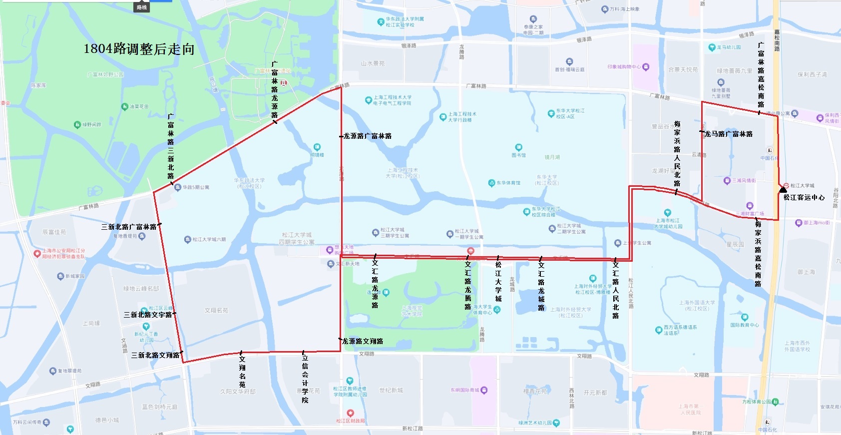 为优化公交线网,方便市民出行,上海松江公共交通有限公司经营的1804路自2024年11月11日起调整线路走向。具体调整如下: